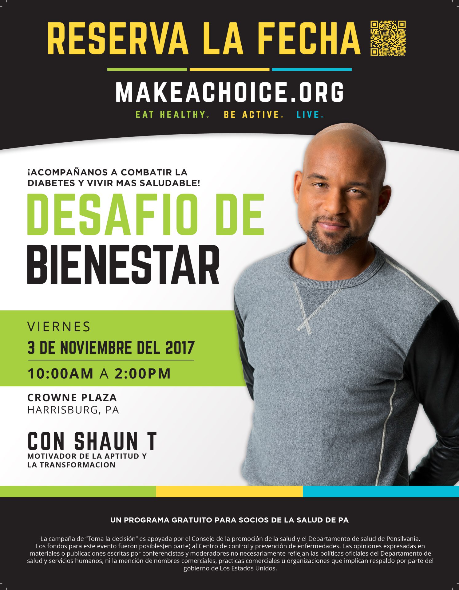 MakeAChoice.org brought in international fitness star and award-winning talent, Shaun T — known for P90X and Insanity workout-at-home fitness programs. We managed all event logistics (hotel arrangements, vendor coordination, transportation, bilingual registrations, promo items), provided oversight of all Latino media relations (print, digital, radio and TV), and recruited people with diabetes to feature in the MakeAChoice.org campaign.